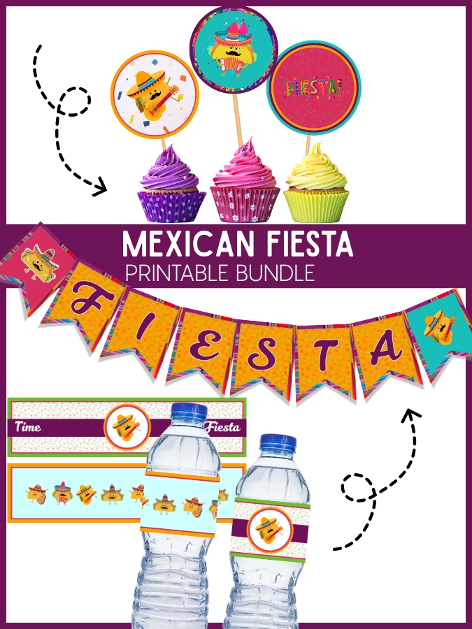 The bundle includes a FIESTA Banner, as well as water bottle labels and dessert toppers. This isn’t Cinco de Mayo specific, so it can be very versatile. You’ll probably use it more than once, so the $6 is WORTH IT.
