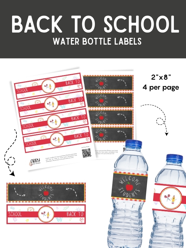 These back to school drink labels would be so cute around little water bottles to give out to students at back-to-school night, or around whatever drink you’re serving at the back to school party!