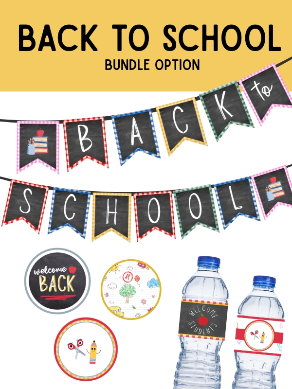 I’m super excited to offer a back to school banner and water bottle labels in my Etsy shop for moms who are celebrating, or for teachers who need something cute for back to school night!