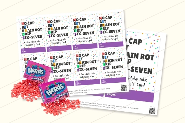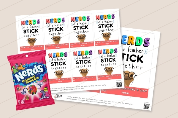 I wanted another tag that could go along with NERDS candy, and I also wanted to use as many Gen-Alpha slang terms as I could! My kids throw around these words on the regular, so I know your kiddos and their class will love it! Once again, add NERDS (this variety pack could work great)!