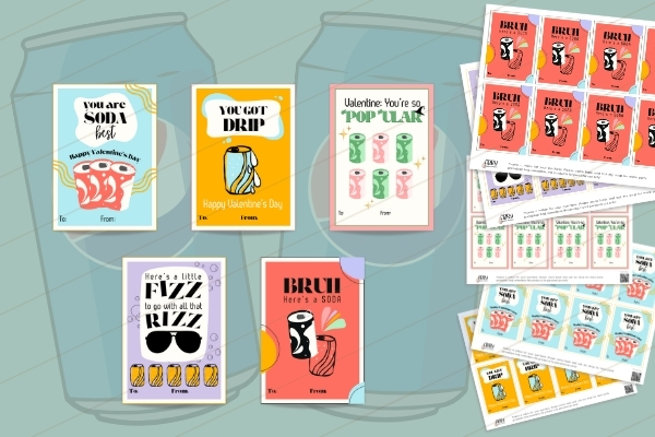 This is my most popular Valentines set! Everyone loves the slang terms that pair so well with soda terms! Add any kind of soda and you’ll be everyone’s favorite! Last year my son made a soda vending machine as his Valentine box to go along with these cards!