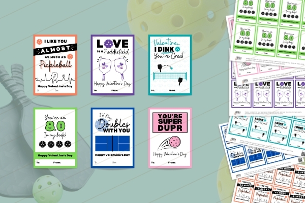 Okay—you KNOW I made these for myself. I’m a huge Pickleball fan so I wanted something I could give to my Pickleball besties on Valentine’s Day. Attach key chains, an actual Pickleball (one for each friend), or even an expensive paddle for your lover (this is the one my husband and I LOVE!). For a really great price you get the whole set of Pickleball Valentines Cards! Worth it!