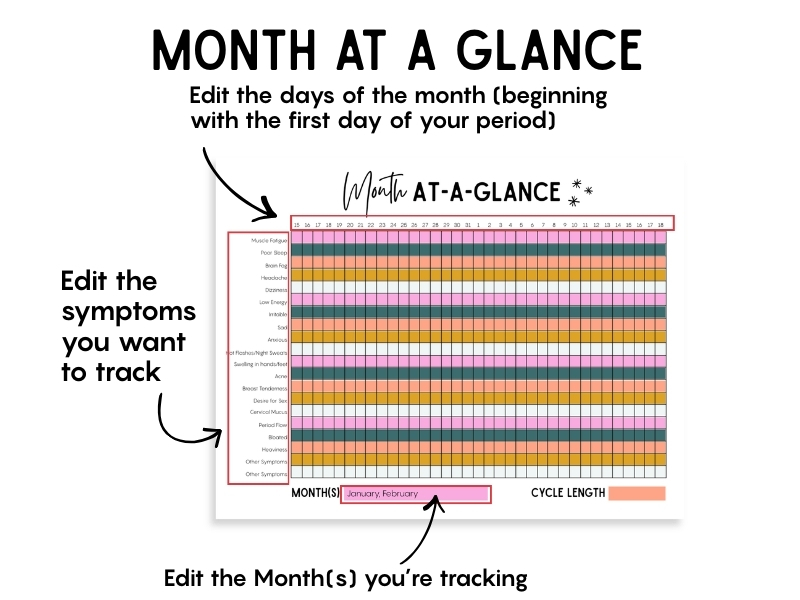 That’s when I decided to create an editable cycle tracker! I can easily edit the dates and the symptoms I want to track, and then print right from my home printer.